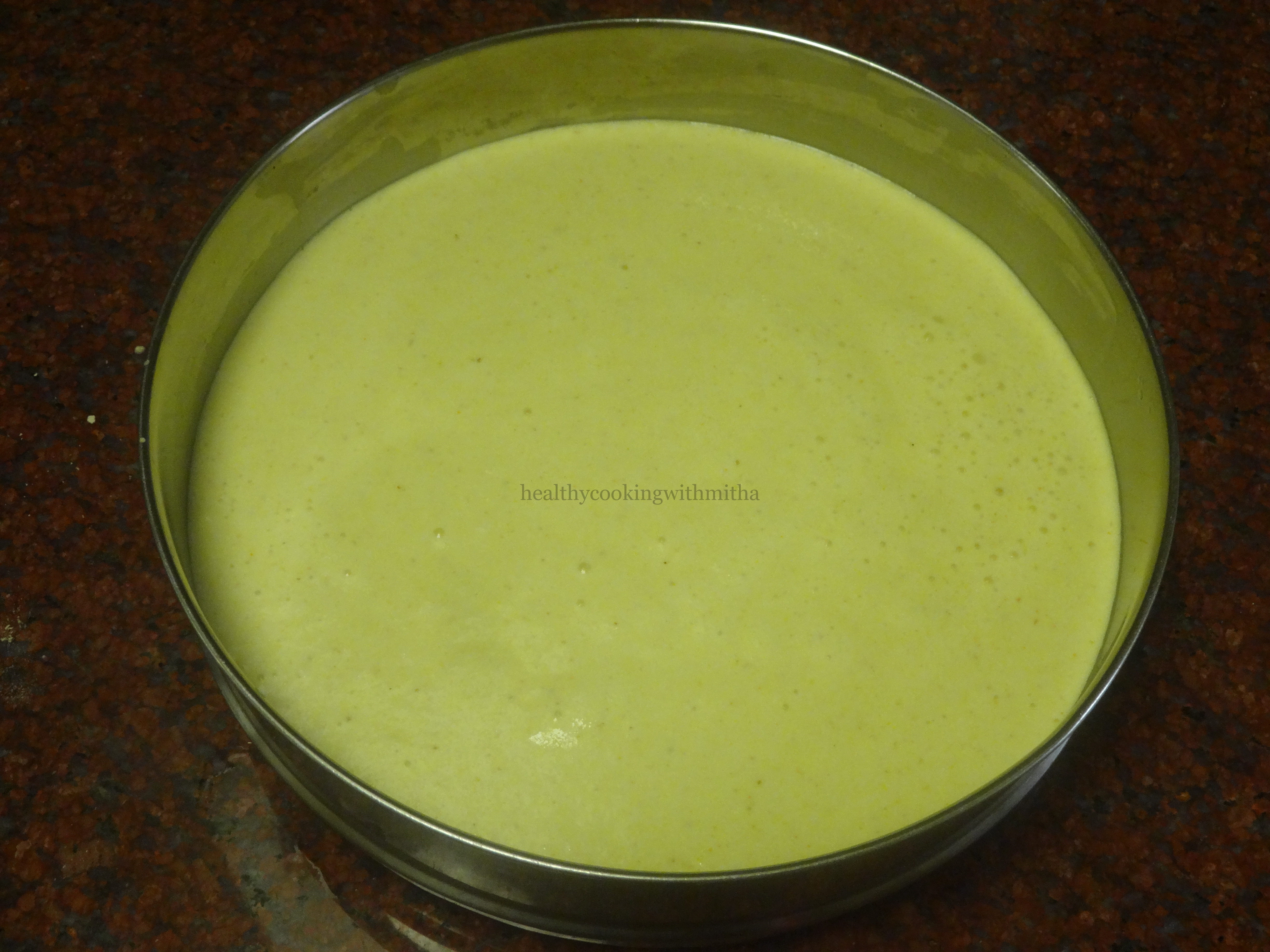 4. Pour into a bowl which has been greased well with oil. Steam for 20 mins or till a knife inserted in the center comes out clear.