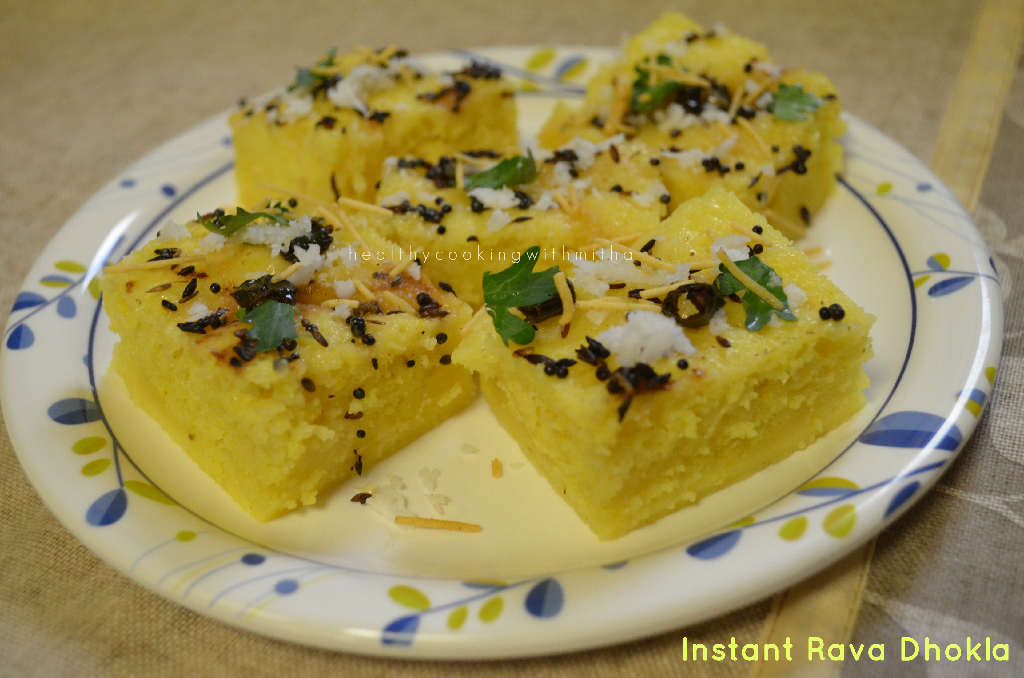 * Don’t add more water than mentioned or the dhokla won’t get the right texture. For 1 Cup semolina, 1 Cup water and 3/4 Cup thick curd gives it the right batter consistency.