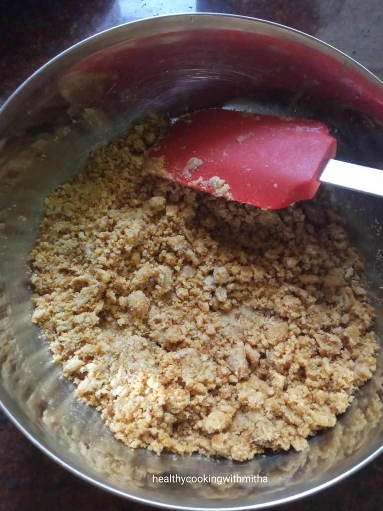 Ingredients: {Makes about 10 to 12 small ladoos}