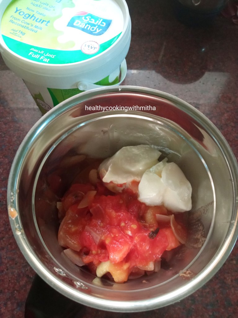 2. Grind to a smooth paste adding very little water ( just a spoon or two) to aid grinding. It should be thick consistency. Add to a bowl.