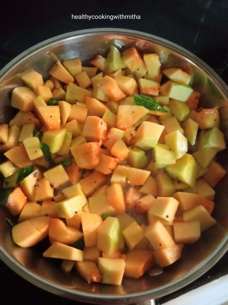 Along with that, I have been making nostalgic dishes which I missed in Qatar all these years, some due to lack of ingredients and some having forgotten about it.. This Nendrabaale kele Gojju or a spicy sweet delight of a side dish is one among them.. ❤️