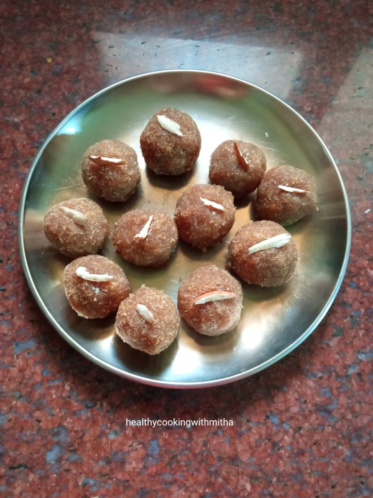 Ingredients: { Makes around 20 medium sized ladoos }