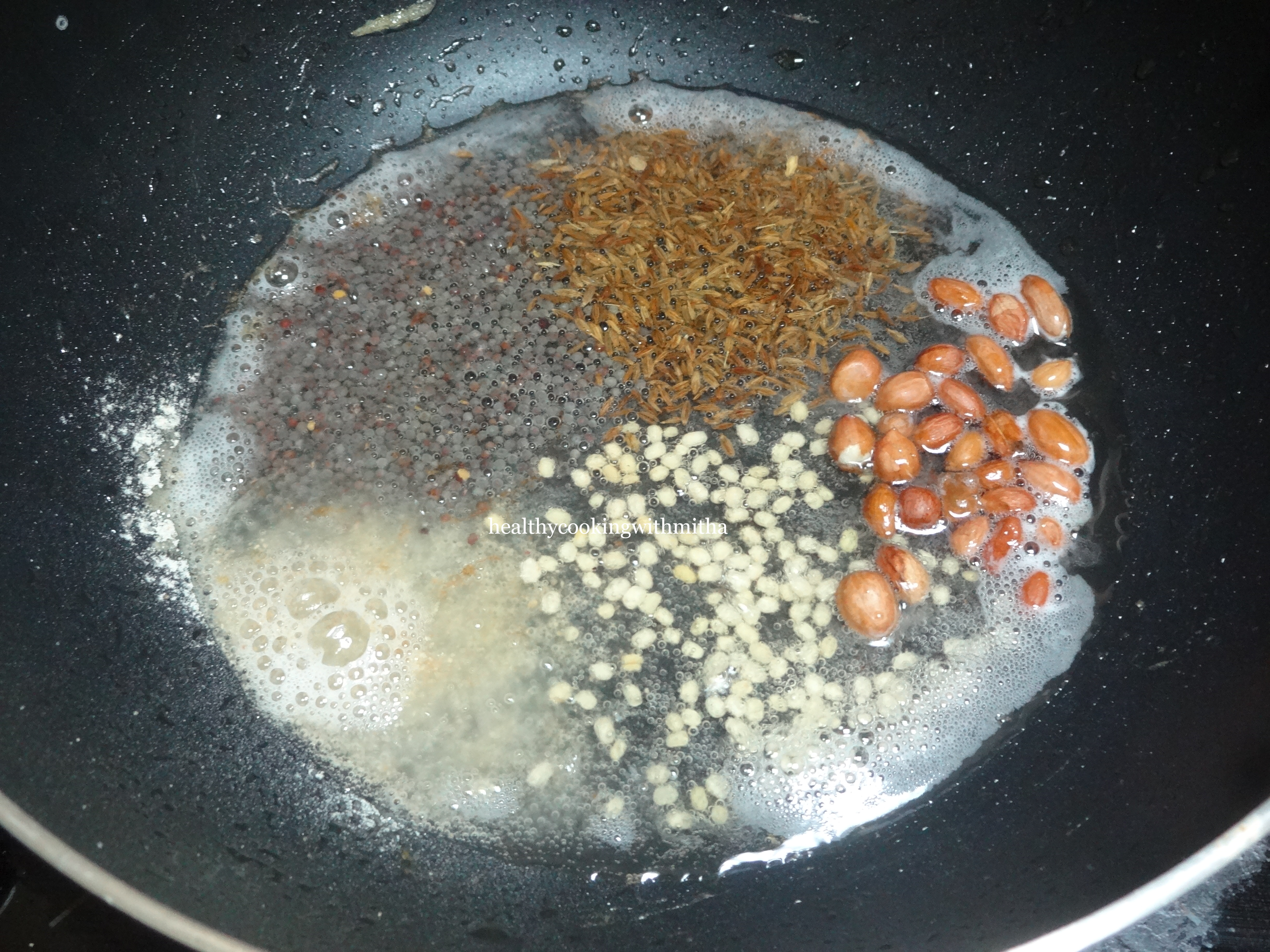 2. Heat ghee in a pan, add cumin seeds, cloves, cardamom powder, bay leaf, cashews, onions and tomatoes in the same order. Fry till cashews turn slightly golden, onions and tomatoes cook well.