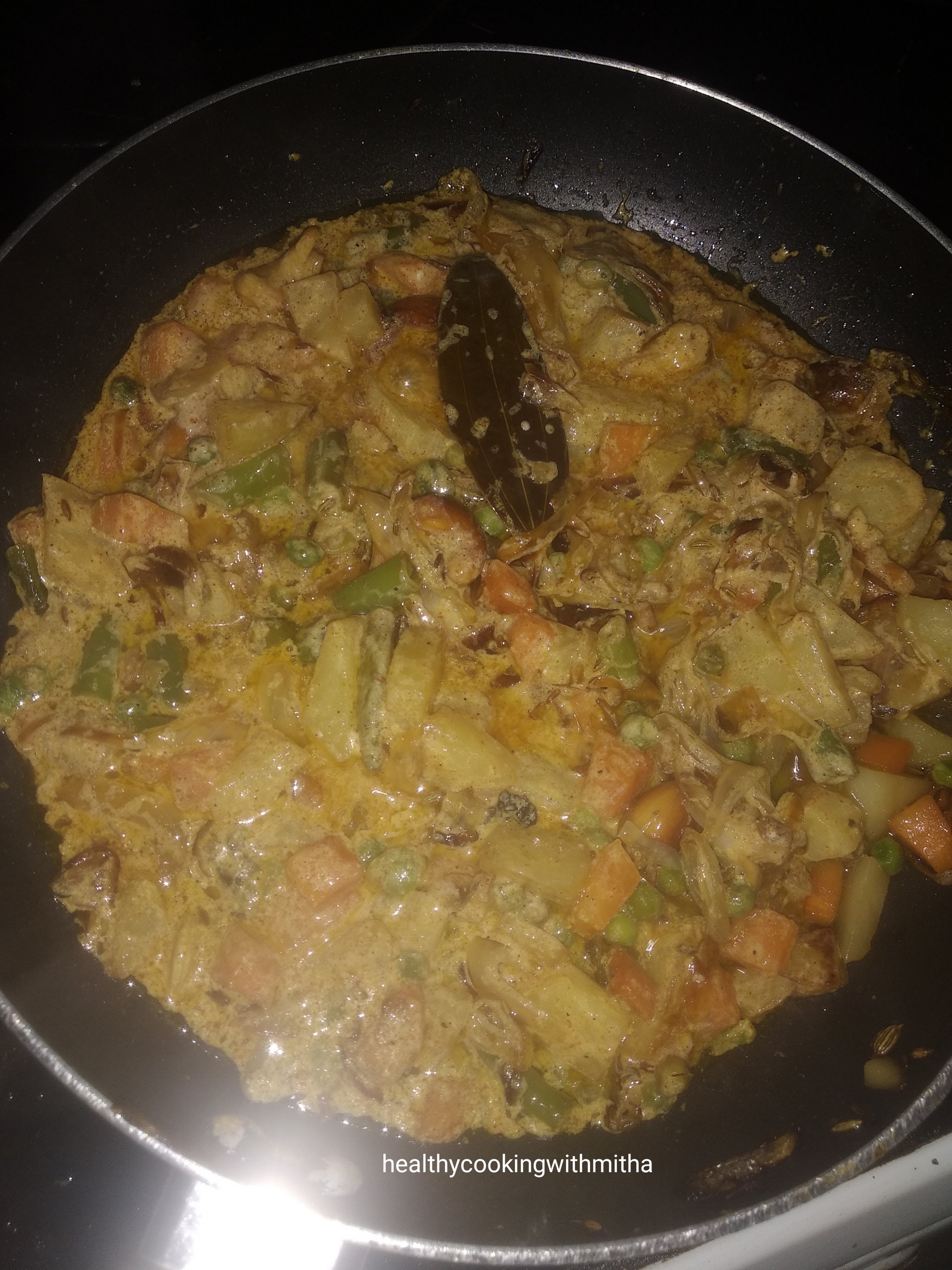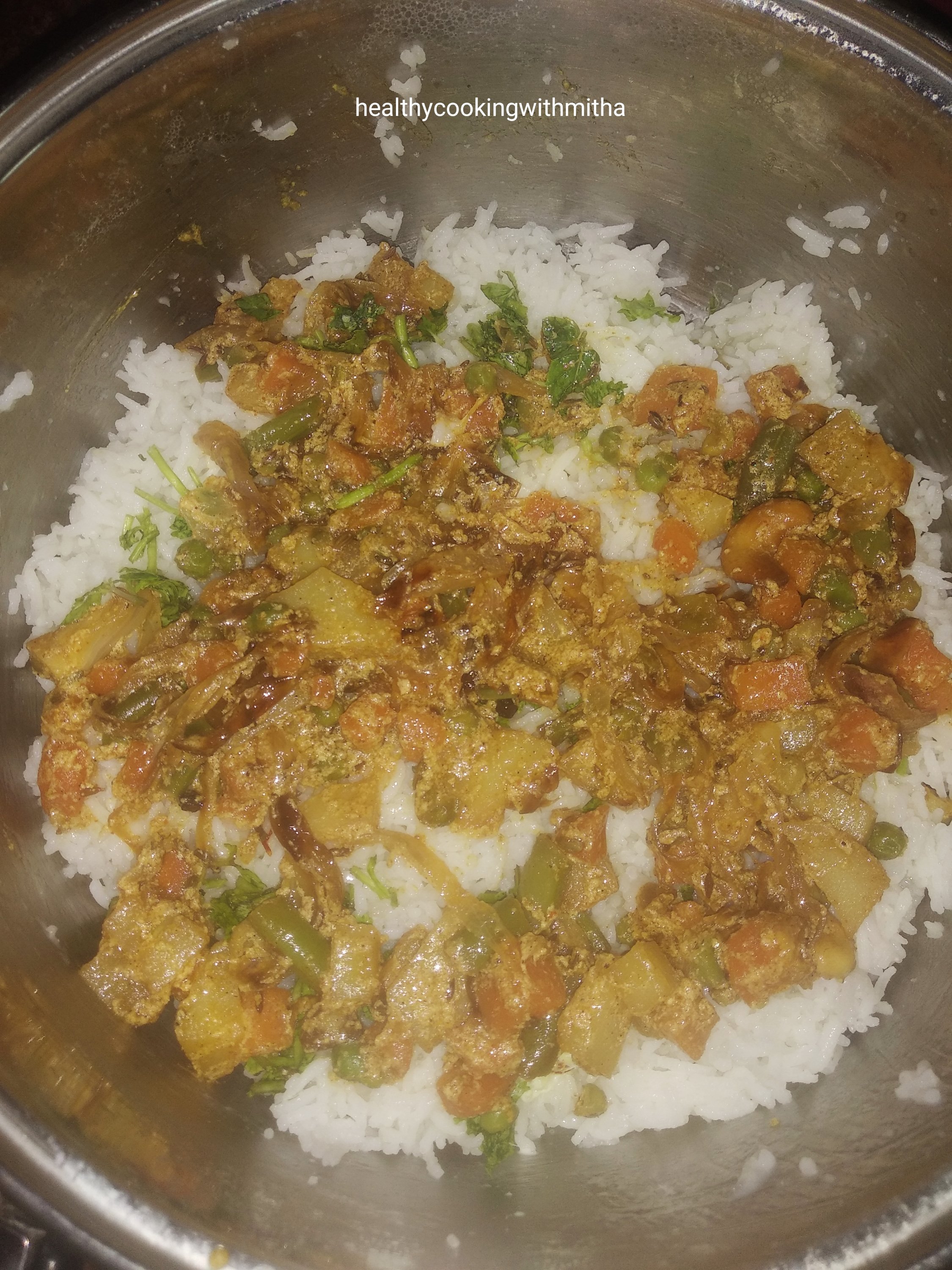 * You can add chopped ginger, garlic and green chillies too in the pulav but I skip since my daughter does not like it.