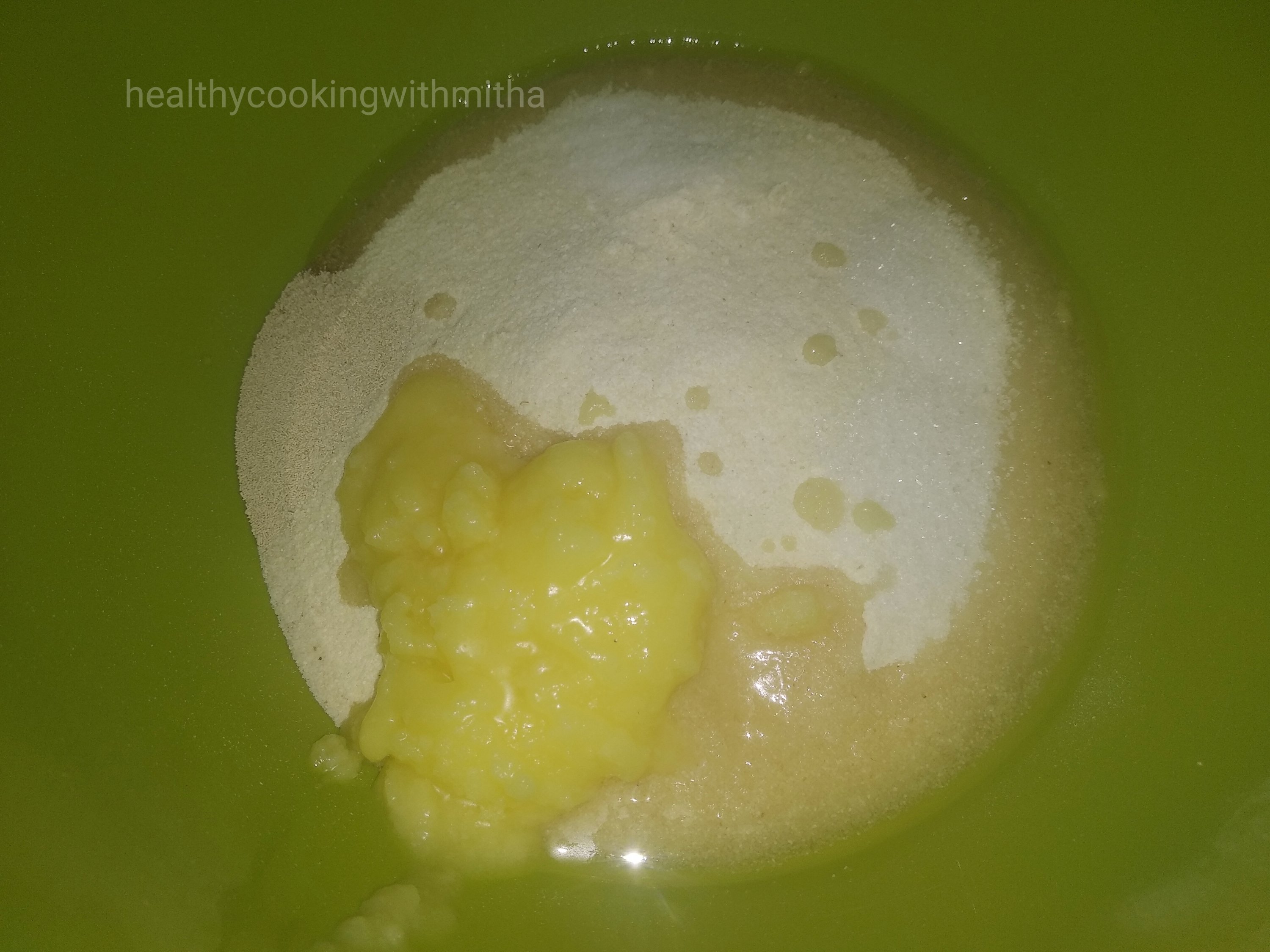 * You can use parchment paper to line your cake tin and cookie tray but I grease them with ghee or butter. It ensures that the cake comes out clean and cookies do not stick to the plate after baking.
