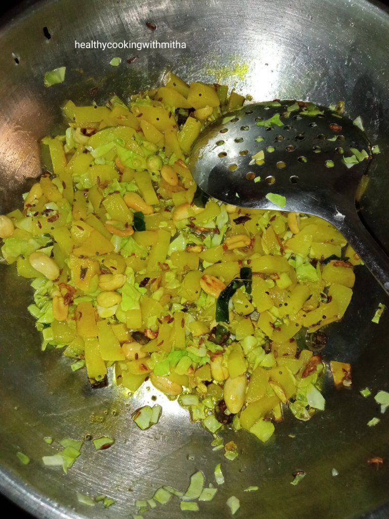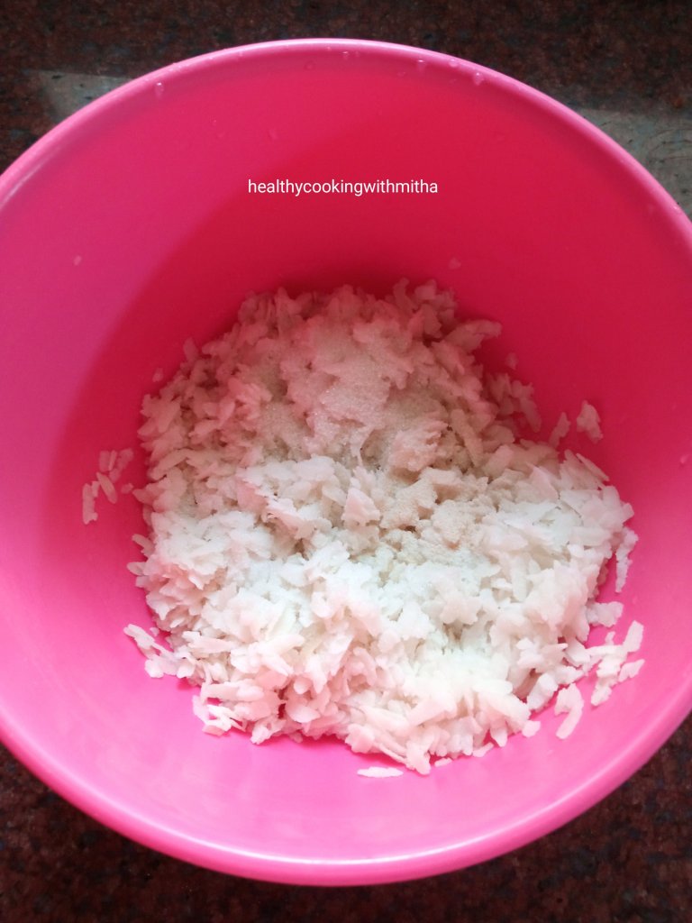 6. Remove from flame, garnish with fresly grated coconut and mix well.