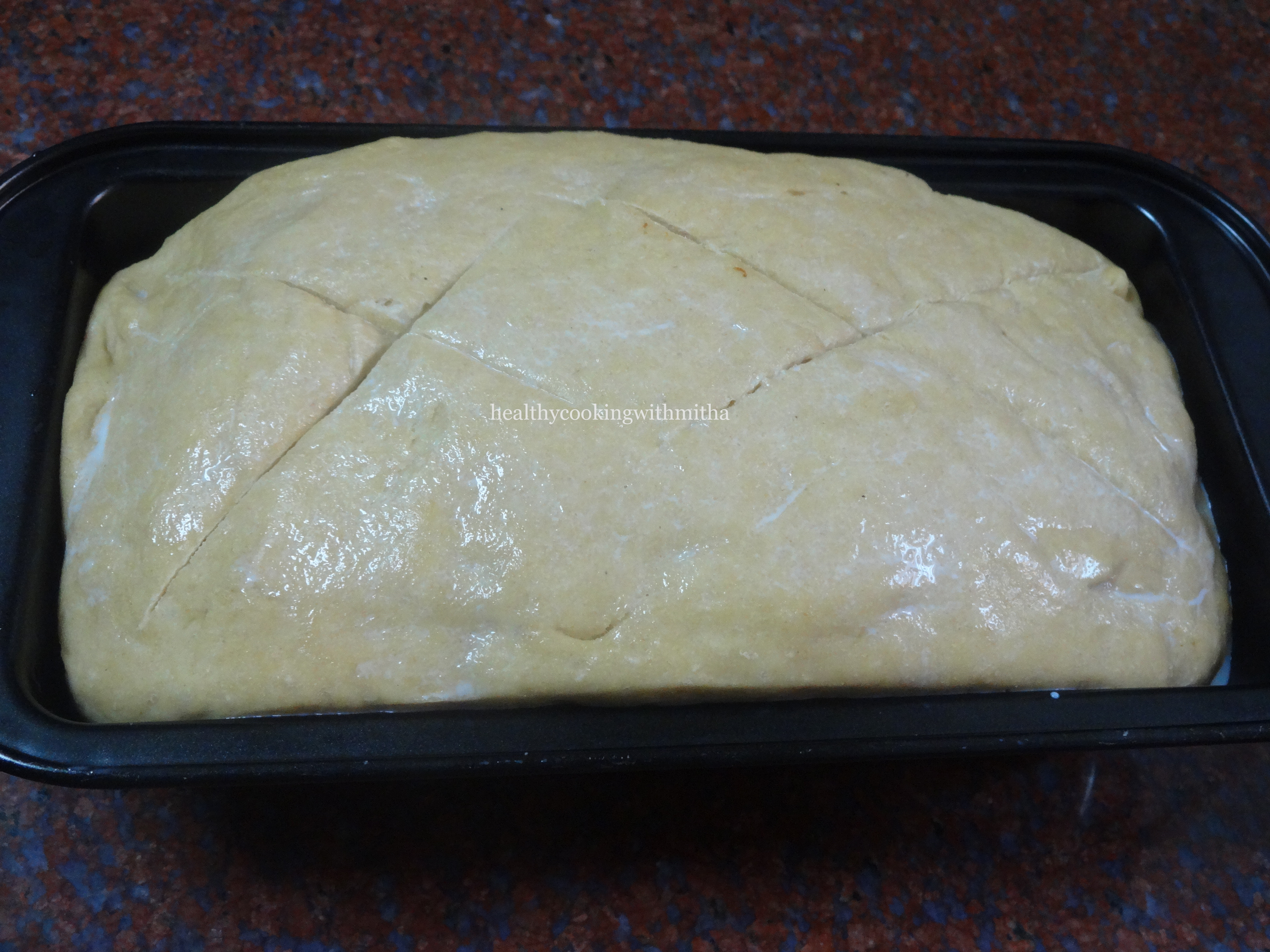 * The length of my loaf pan is 20 cm. If you choose a longer loaf pan, the bread may not get height for 3 Cups flour. So best is to use a 20 cm pan for 3 Cups of flour to get the bread as shown in my pictures.