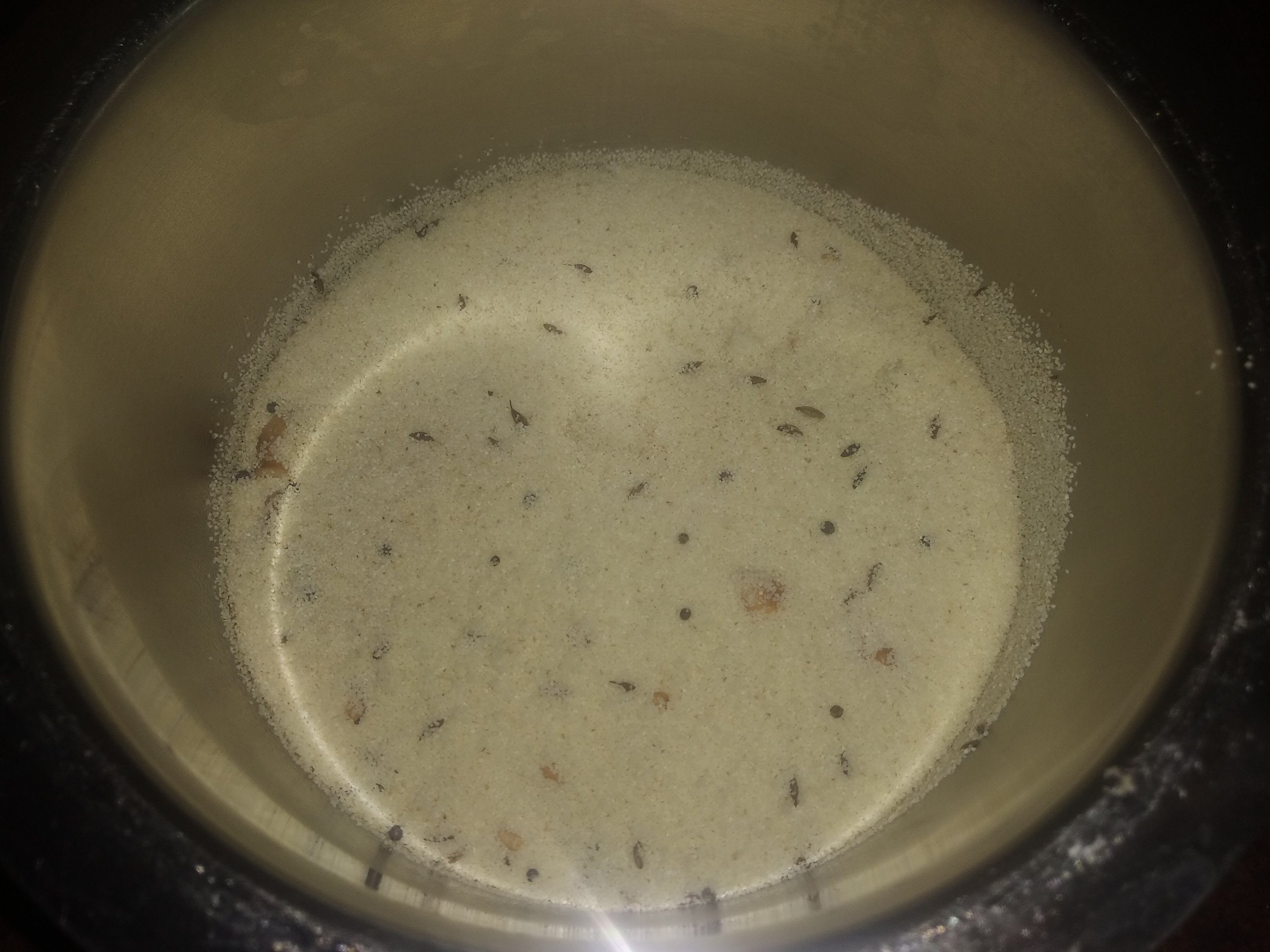 The consistency of the batter should be slightly thick to make good rava Idlis.